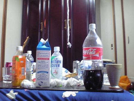 え~今日が雨としらずにみんなに「花見だ集合」メールを打ってしまった黒き雷光ですみんなきてもウチでダラダラしてるだけなんだろうなぁ…それはそうと昨日は大変でしたってか頭痛い飲みすぎた…いやぁ~金曜日にいきなり決まった同窓会が昨日あったんですが(場所は俺ん家)みんな久しぶりに会うもんだからテンションがおかしい…ってかペース早っそしてだんだんグダグダになってきたころ…『コレじゃんけん負けたやつイッキなぁ~』とバカが言うんです(中身は96度のウォッカ・いいちこ・ベイリーズ)いや死ぬぞ?でも♪出さなきゃまけよ♪なんで…ジャンケンポイっ負けた?うそ~!?『イッキイッキ』こんなんイッキしたら急性アル中になるんじゃ…しかたがない…ゴクッ…ゴクッ…ゴクッん~マズイッなにがどうマズイってヘンな甘みのついたアルコールを飲んでるみたい…あっ目の前がクラクラしてきた…ギブアップってな感じで来客である同窓生をおいといてベットでダウン…んで朝起きると人数が半分に…アレ?なんで?友達『あいつら帰ったで?』せめて挨拶ぐらいして帰れよ…ってかちょっとはかたずけろってキタナイではこれからかたずけにはいります教訓・バカみたいな飲み方はしないwww↑飲むたび思うこと