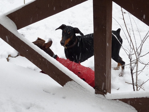寒いごだ~洗濯干してたっけ、先から凍っていくよは~おらいの前の道はアイスバーンになってっさは。おっかなくて散歩にも出らんないよはだれ~ころんだら寝たきりになるさは~でも1月最後の日はそうでもなかったから・・・仲良く遊ぶ兄弟にデルピ参戦1月のいい締めくくりになりました。 ぽちっとお願いしますそして、帰りに偶然 じげぱぱさんに会いました。う~~もっと話聞けばよかったっ