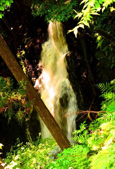高野の滝、落差8メートルの分岐瀑。道路の上から見える。少し下って砂防ダム辺りから滝下まで行けるようだが、靴濡れるからやめ。すれ違えない道を行く。ここから歩き。日本は、という人は日本のため。この国は、という人は・・・あ、媚中親中議員もいるが、学生時代夢中になったH田カツ〇もそういってたような。我が祖国ニッポンと本題にはなってたけど。中国の旅、中国が用意した人だけに話を聞いて検証せずに記事書きましたって謝ってました。山路を歩く。大岩。5分程歩くと、小屋が見えてきた。河原田不動滝。滝前には不動尊(五体明王不動滝)。河原田不動滝は上流にある滝の合計7本の滝の総称で、この一の滝が最大落差で、45メートル。ところで、宮殿風霊柩車見なくなったな。子どもの頃、見たら親指隠してた。フォツクスワーゲンのビートルも50回見たら幸福、でも何色か忘れたけど見たら0に戻る、永遠に50台に達しないてのもあったなあ。何色だったかなあ。ビートル見なくなったなあ。妹が乗ってたけど。