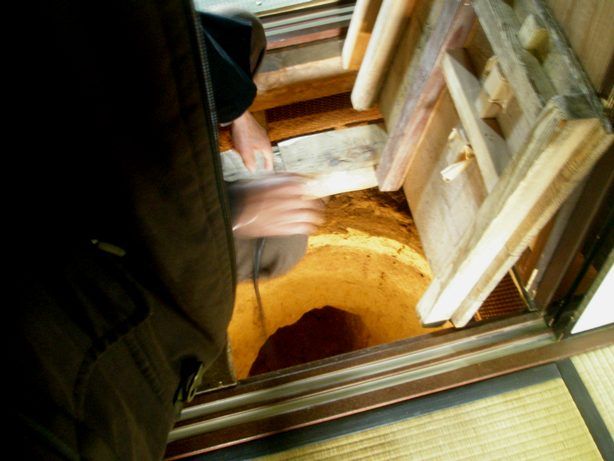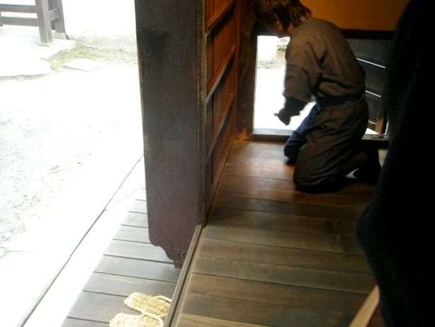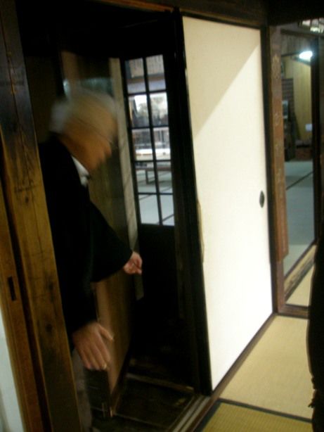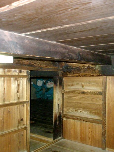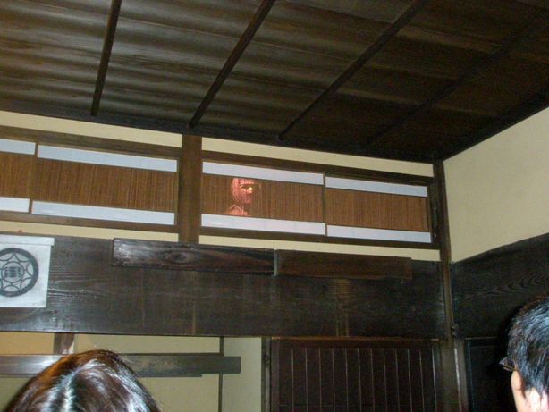 こちらの案内人は、おじいさんで、やたら学術的な説明であり、こちらが本家本元だと、言い張るのであった。伊賀の忍者屋敷は、この屋敷を真似して作りました。こちらは昔からの建物そのままなんですとのことであった。