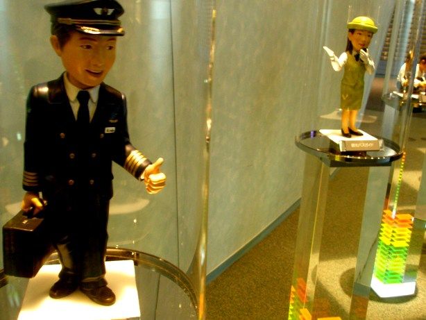 客室乗務員。最近、ビデオでの緊急避難の説明が多くて、特に、ANAのはさ、喋っている人と、ビデオの中で動いている人と、よくみると別だから、クフフと笑っちゃうんだよ。アナウンスと、空気吹きこむ人どっちやりたいかな。