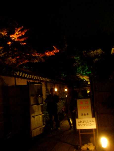 紅葉には、まだ、少し早かったが、ライトアップの公開時間も21時半を過ぎ、到着したときには中にも入ることはできなかった。(23時16分の河原町阪急電車に乗らなければ、90分かかる神戸まで帰ることができないので、残された時間は1時間程度ではあった)