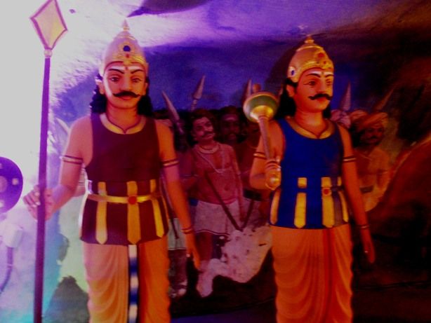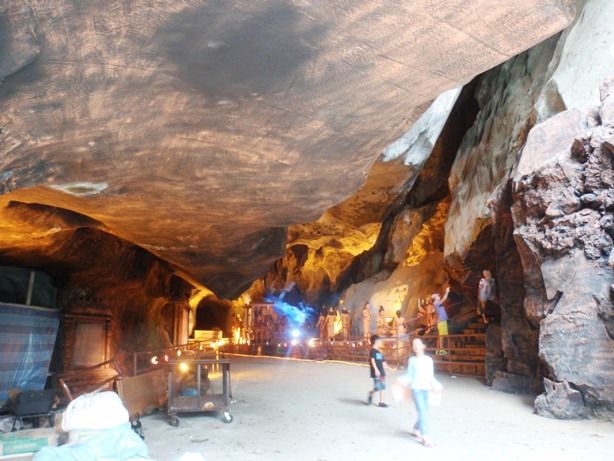 駅から、バツー洞窟に行くまでに 、メインの門を通らずに、横道の小さな裏口から入るのだが、まっすぐバツー洞窟を目指さず、左に曲がるのである。勿論、何故曲がったか分からないが、そこにビッグなハヌマ-ン像があり、おじさんが、何だかボロイ椅子に座ってチケットを売っていたのである、それも安く2リンギット(60円)である。これは、よく分からないが、入らねばなるまい、そう思った次第。何故ならショボクテモ後悔しないからである。実際は、後悔はせずに満足したのである。