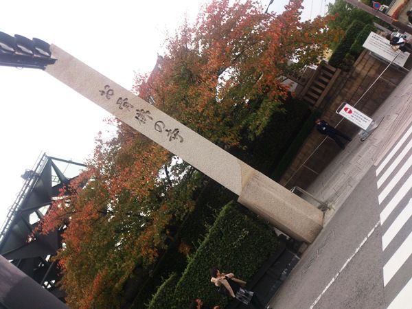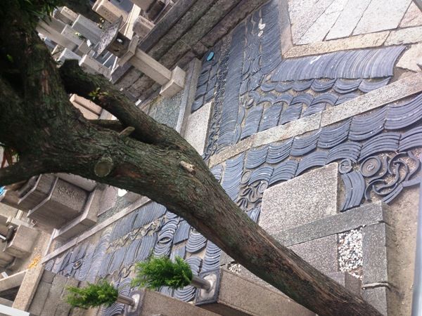 お墓の前の道は、瓦が埋め込まれており、いいな、これと思う。