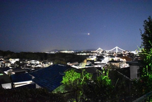 半年振りぐらいにたまたま来る。というのも、仕事でこの近くを通ったときに、オレの実家の近くやな、ちょっと寄っていい?と聞きながら寄ってもらった。ちょっとこの風景みてくれ。「アレが明石海峡だが、昔はなかった。それと、この樫の木見てくれ、俺がガキの頃に良く登っていた木だが、いまや無残に切り刻まれながらも、小さくなって生きている。ここでオオクワ(大クワガタ)とったこともあるんだぜ」、などと言っていると、なんだか、幼少期の自分をパノラマ的に紹介している感じになってきて、「オレと付き合ってよ」、とかプロポーズの前提ね、みたいな感じになってきた感じがして、すんごく恥ずかしくなってきて、じゃ、戻ろうか、と何だか途中で切り上げるように車に戻り会社に戻る。「こんないいところで育ったんですねえ、いいですねえ~」とか言われると、余計に意味なく急速に恥ずかしくなり、オレ、何懐かしズムを語ってんだ?という恥ずかしい気分になるのであった。