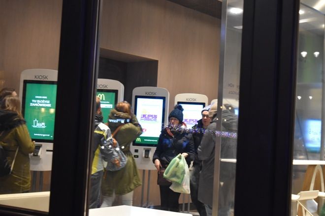 マクドは、画面上で注文して、カードで払うか現金で払うか選択を迫られ、現金は奥の窓口で支払うシステム。現金払いコーナーには人員は一人だけ。