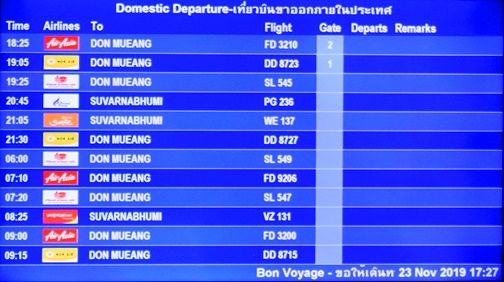 ドンムアン空港LCCノックエア。斜め前に座っていた老人が日本人だった。少年ジャンプ読んでいたから。到着したときに爺さんに電話がかかり、ハイハイ、何ですか、え、今、タイにいますから、電話しないでください!ガチャンと電話を切った。