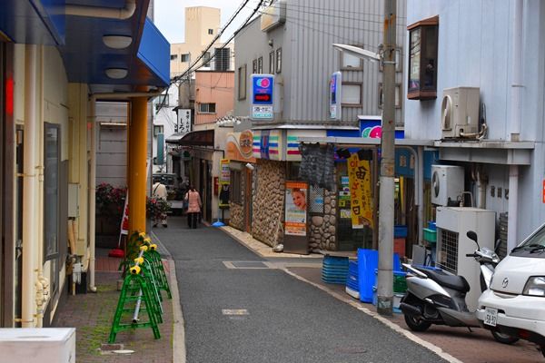 駅を出ると、魚屋で、ある季節になるといかなご大量に売られ、いかなご数キロ買ってくるよう母親に命令された。その横はウエダという雑貨屋であったが、どうやら資本は変わった模様。