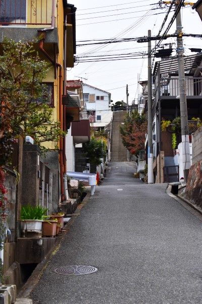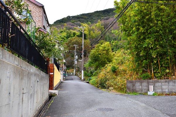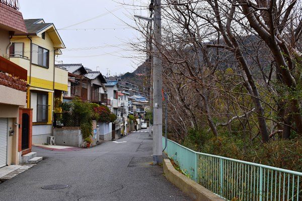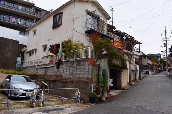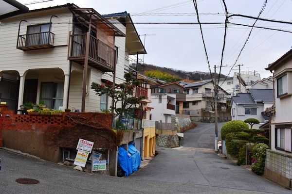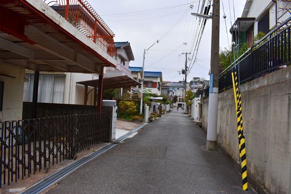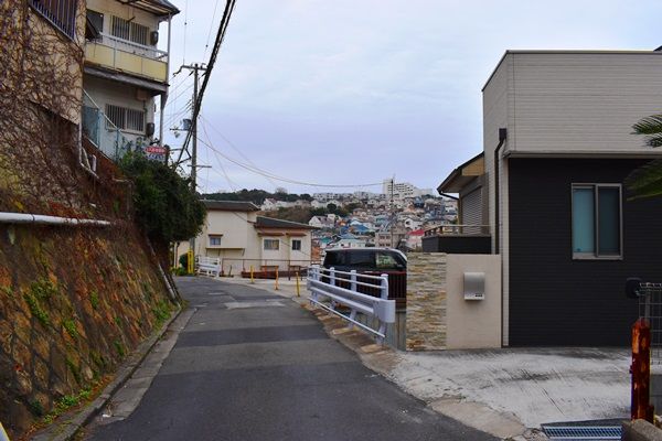 通称、豚坂を上がってきたところ。豚小屋はなくなり、今は、マンションが建っている。
