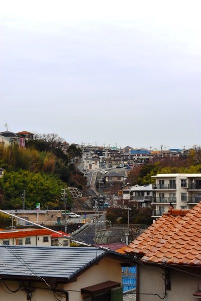 遠くに中学校への通学路が見える。中学校まで40分。小学校は20分、高校は60分、大学は90分であった。