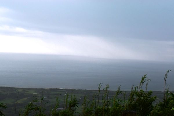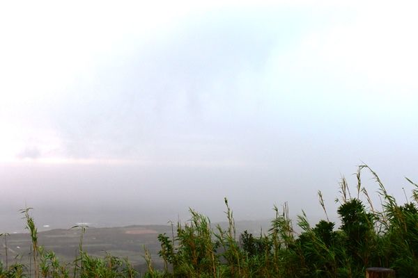 240メートルの頂からは雄大な景色と言いたいところだが、風と薄暗さと大雨で、勇気ある撤退である。えらい着くまでに時間かかってもたのにな。展望台から西側(西之表方向)は全く見えなかったわけだ、馬毛島まで見えるらしかったが。