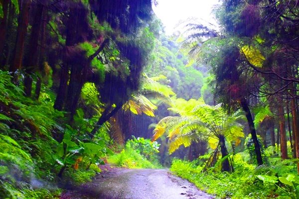 もはや、いわゆるところのバケツをひっくり返した雨である。しかしながらいやはや、ヘゴには雨が似合うのだなあ。