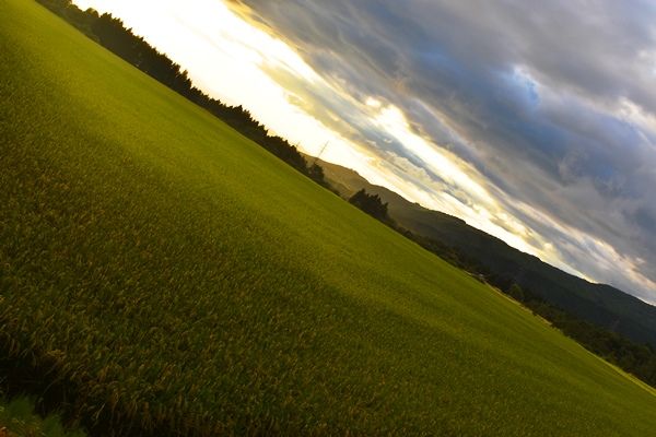 雨が降り、田を濡らし、私も濡れるが、遠くは晴れ。