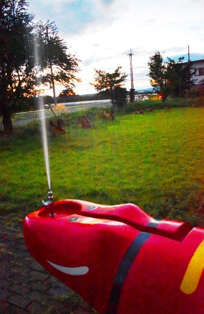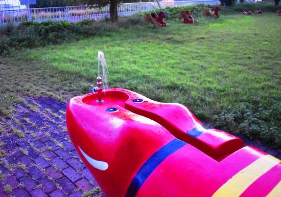 どや!子供時代、こんな遊びしたなあ。子供の時は、水道水がぶがぶのんだよなあ。水道の蛇口も動くようになっていて、上を蛇口を回して、直接飲んだよなあ。