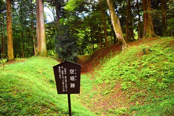 中世には、丘陵全体が居館として使用され、敵の侵入を防ぐために造られた土塁や空堀で囲まれた範囲に主郭があった。