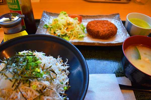 1時間半ぐらい前に空港に到着したので、飯くうことにする。何にするか考えると、じゃこだらけ定食というのがあって、じゃこめし、じゃこコロッケとかじゃこ味噌汁とか、味噌汁が美味かったわ。
