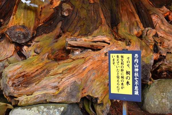 その七、祖父杉の幹に桐の木が生えていたと伝えられています。