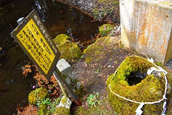 その四、手水ばち 「手水ばちはどんな干天でも水が乾くことがないと伝えられています」