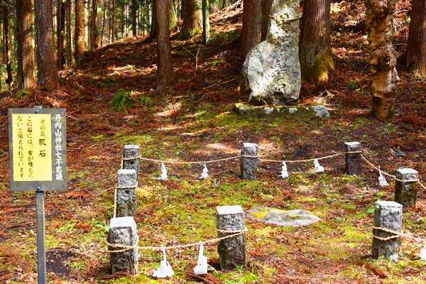その三、肌石 「この石には、雪が積もらないと伝えられています」