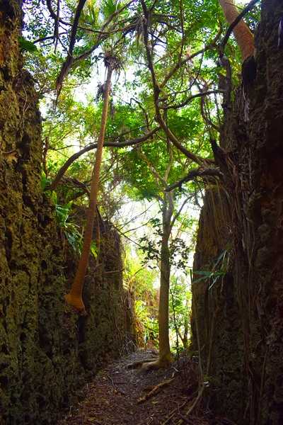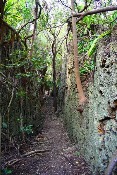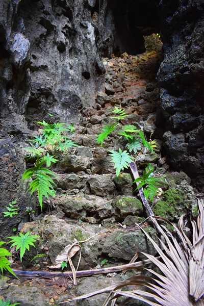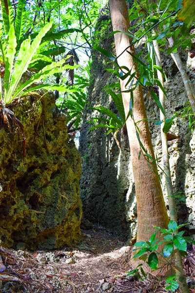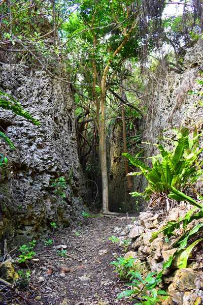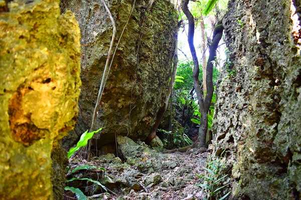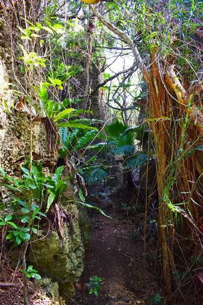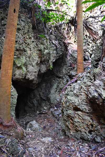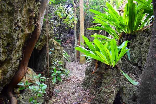 島の中央部の礁湖を囲む環礁が隆起してできた島で、大陸とつながったことはない。生まれは3000キロ向こうの赤道付近であります。4800万年かけて、毎年フィリピン海プレートに乗って5,6センチ動いて、ここまで移動してきたよ。