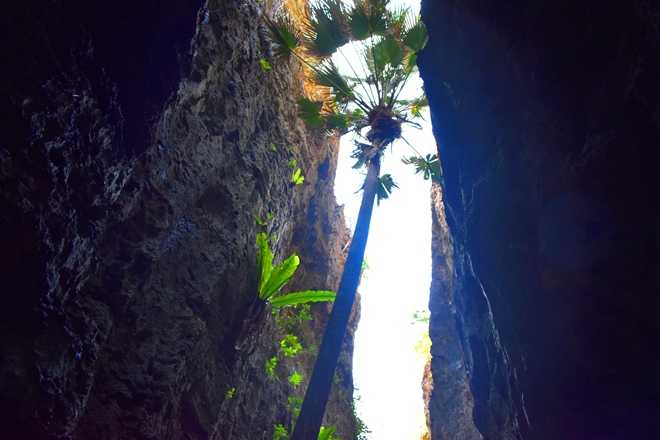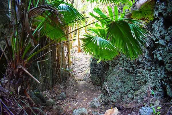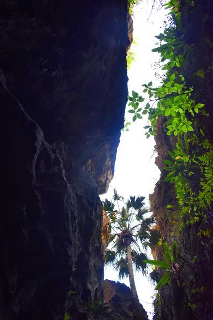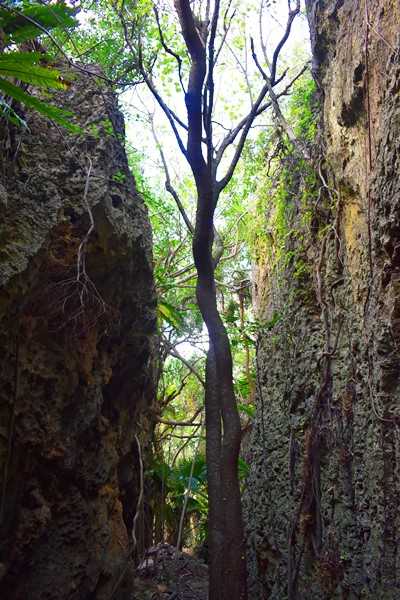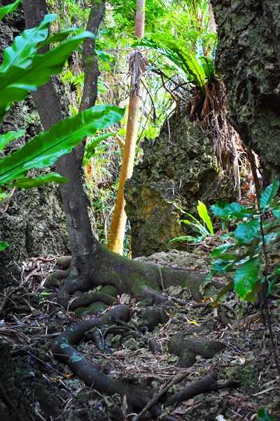 島の木、ダイトウビロウが面白い。光を求めるかのように、伸びていく。