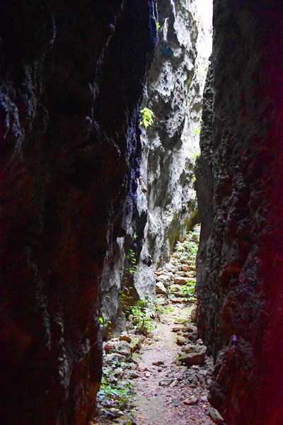 一つの岩が裂けたのではなく、岩盤自体が裂けている為、入口からだと数百メートル程の裂け目が続く。