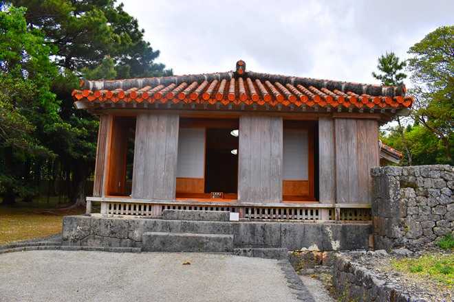 玉陵の門の外にある東の御番所(あがりのうばんじゅ)。法事のときに国王の控え室。西の御番所は再現されていない。