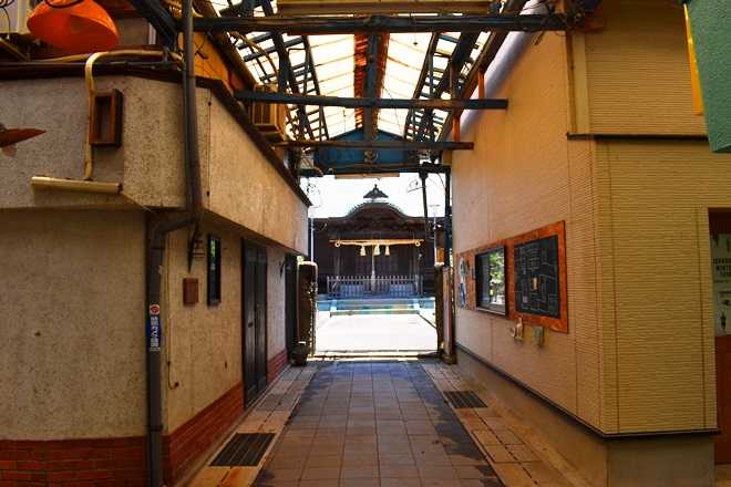 八女町 土橋市場 土橋八幡宮境内に商店街。