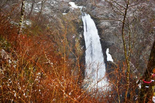 幅6メートル、落差55メートル。日本三瀑布ともいわれるが、袋田の滝の方がすごいな、あちらも三瀑布といわれているが。華厳と那智は不動か。直瀑という意味では、そうかも。