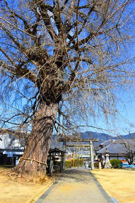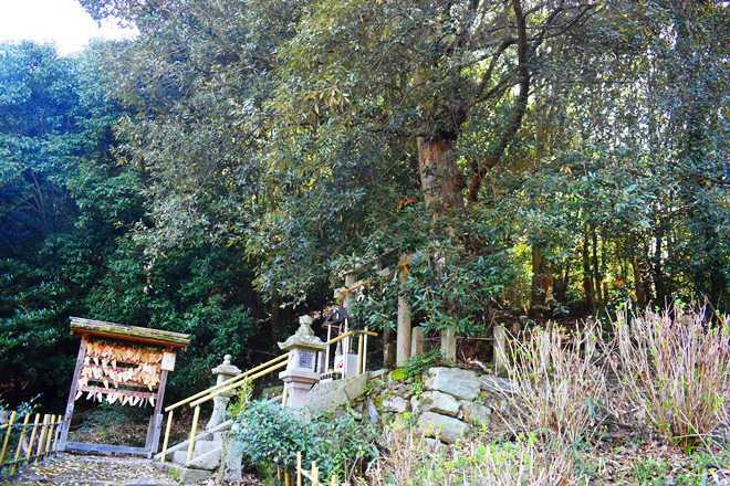 鎌八幡宮は社殿はなく、鳥居の奥には一本の大きな木があるだけ。