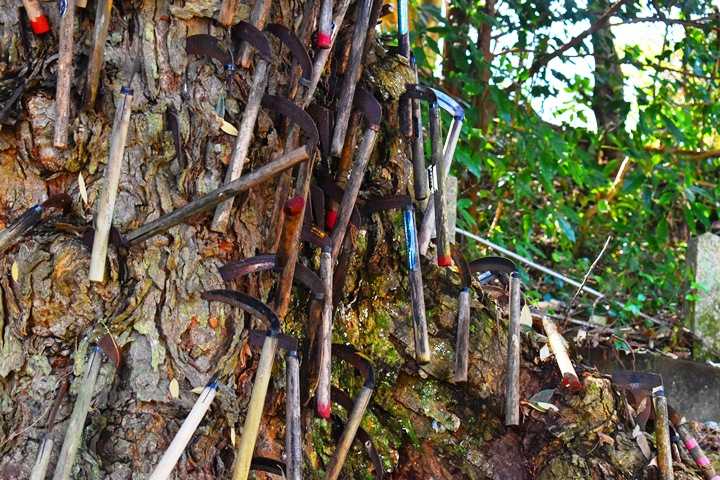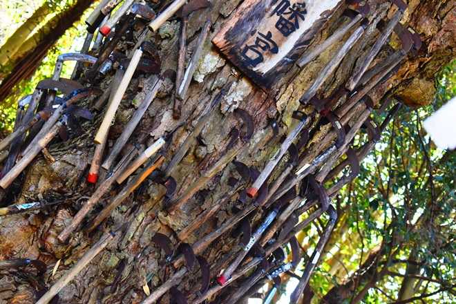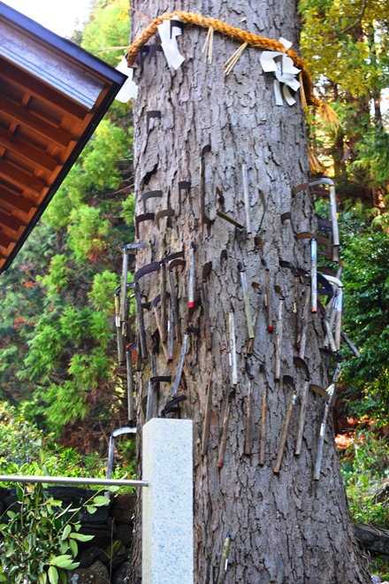 江戸時代、最盛期には1,000丁もの鎌が打ち込まれていたようだよ。