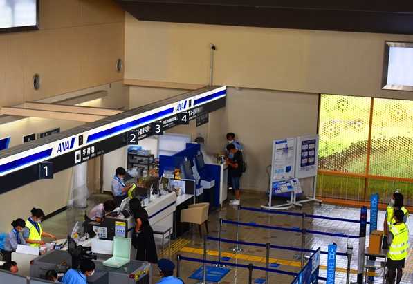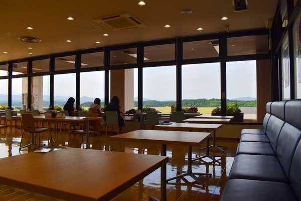 空港レストランに入ると、3人組がいただけで、あとから男性一人入ってきた。