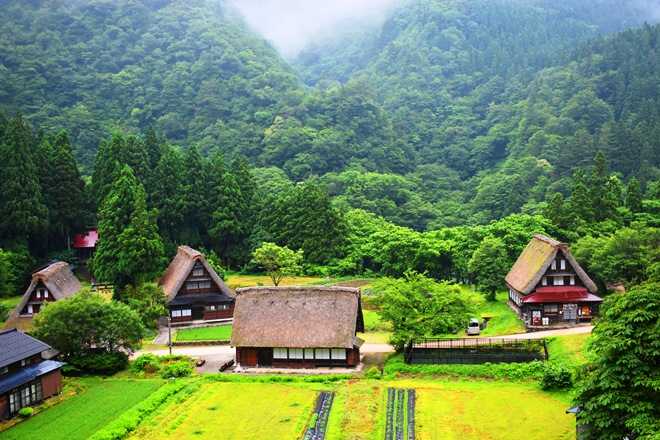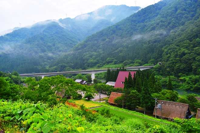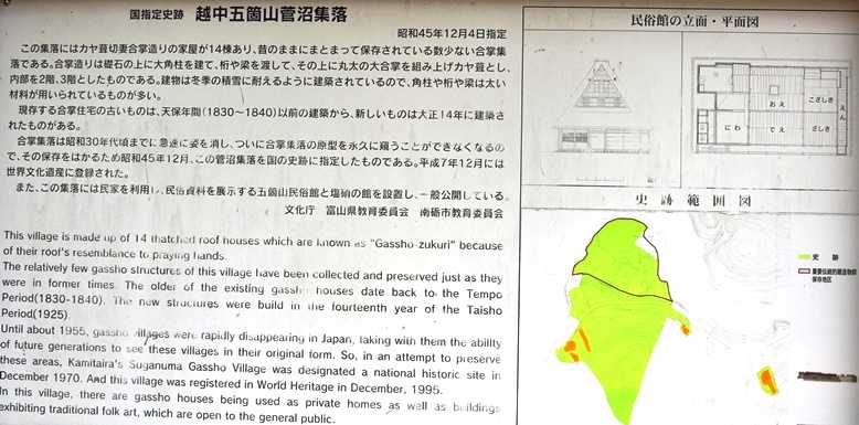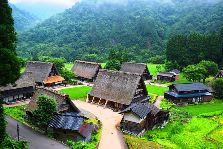 富山県の南西端にある南砺市・五箇山にある菅沼合掌造り集落。その家屋は、冬の豪雪に耐えうる強さと建物、養蚕などを生産する仕事場を兼ねている建物。1995年12月に岐阜県白川郷、五箇山相倉とともにユネスコの世界文化遺産に登録。