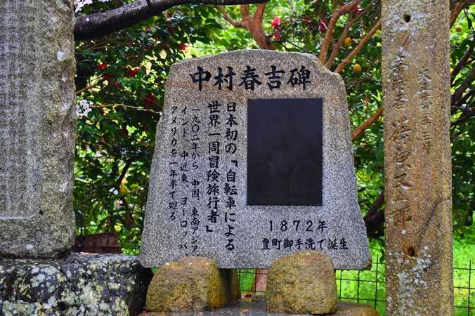 中村 春吉(1871年(明治4年)3月 - 1945年(昭和20年)2月)、日本の冒険家出身の地。自転車による世界一周無銭旅行を実行。1902年(明治35年)、自転車による世界一周無銭旅行に出発。横浜港-中国-シンガポール-ビルマ-インド-イタリア-フランス-イギリス-アメリカと経由して、1903年(明治36年)5月に帰国した。え、1年で?