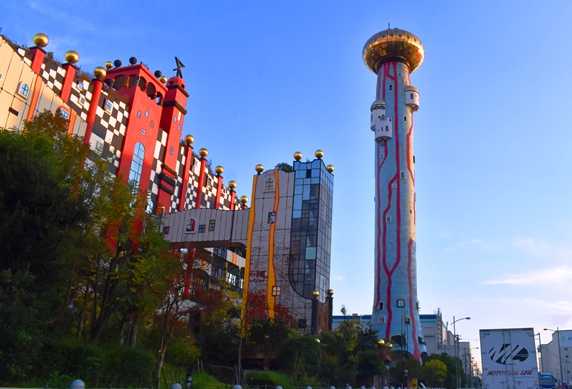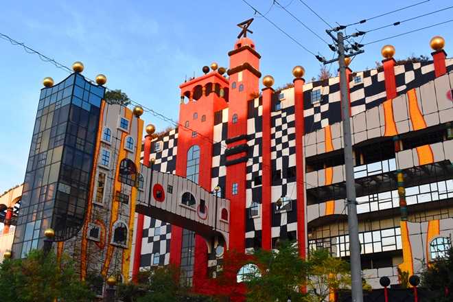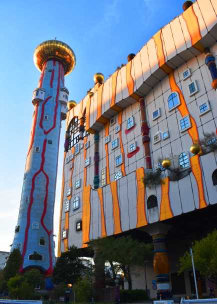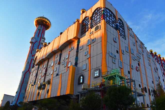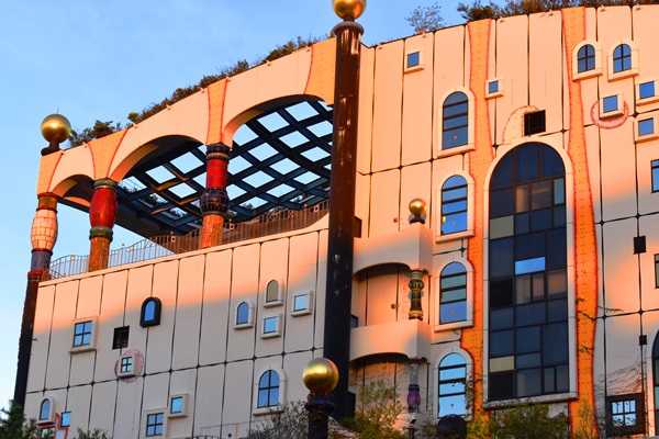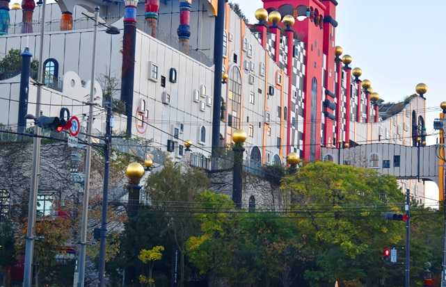 無駄使いと非難ゴーゴーの中2001年竣工。前年フンデルトヴァッサー死去。