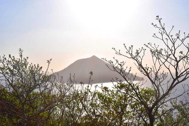 八丈小島は海食崖に囲まれており、海岸線の大半が急斜面の島。標高600メートル超の大平山がそびえる。