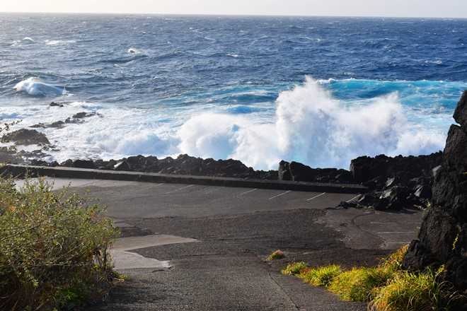 八丈島 汐間の滝、洞輪沢漁港、廃墟ホテル、名古の展望台、玉石の墓地