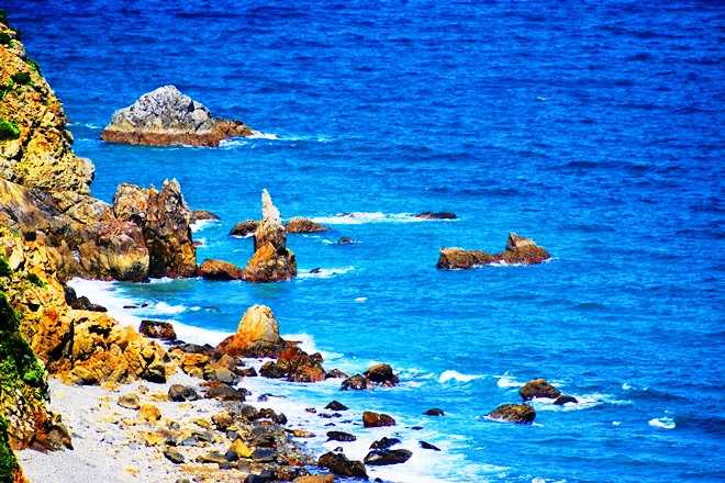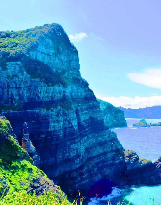 高さ100~200メートルの海食崖が16キロ続く奇岩、巨岩群。