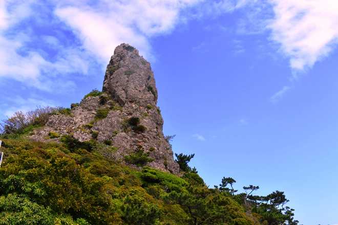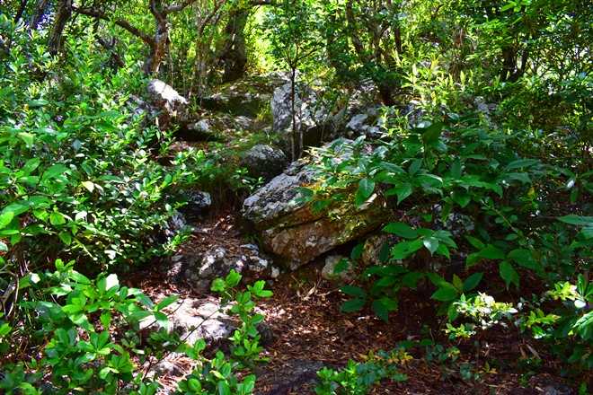 美織場。チヂン岳の南斜面に3坪ほどの畳岩。