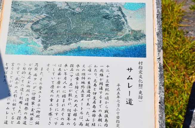 12~13世紀の頃から、戦後、伊是名島を一周する道ができるまでの間、元島と伊是名島南西部を結ぶ唯一の生活道路として使用されてきた全長約2キロの旧道。