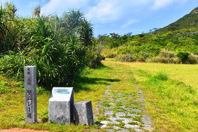 「サムレー」とは、この道に並べられている石が、侍の足跡に似ていることから、サムレーと呼ばれるようになったという。