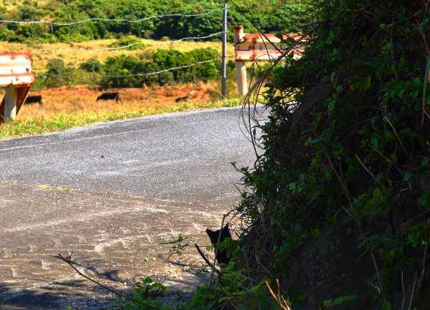 ティンダバナの崖。あとで行く。崖が壁画のように見える。人物2人と猫。