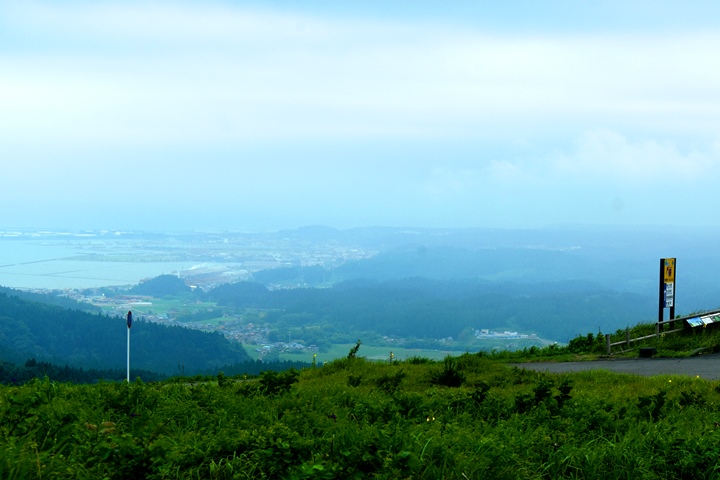 八郎潟を干拓してできた国内最大の人工の大地がある大潟村が見える、今からそこに下りていく。