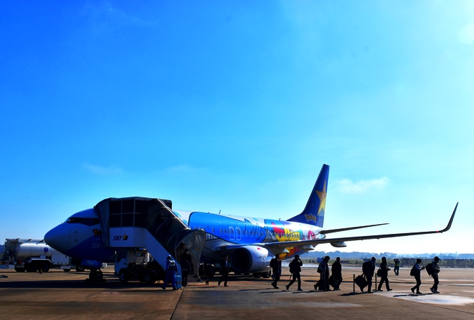 霧晴れ待ちで定刻出発したが40分遅延。茨城空港到着。