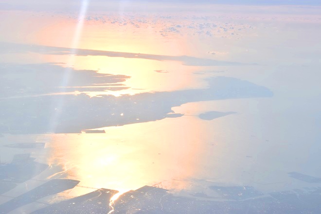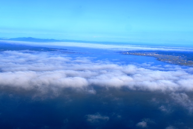 霧のため、茨城空港離発着停止中。同じところを3回廻る。増殖高速炉みたいなところ3回見る。