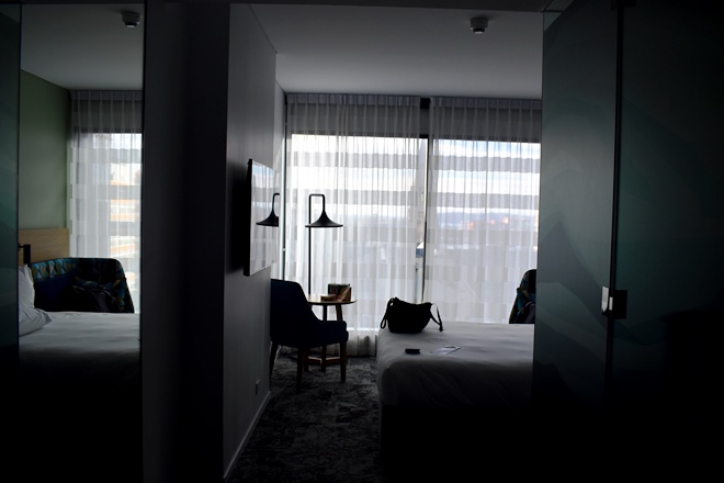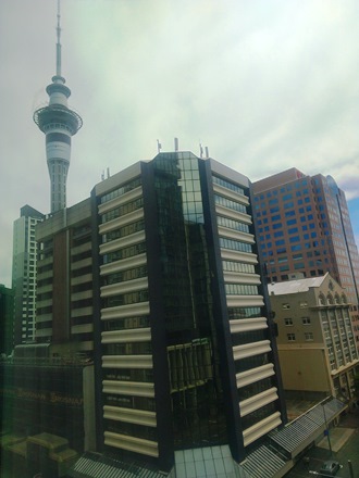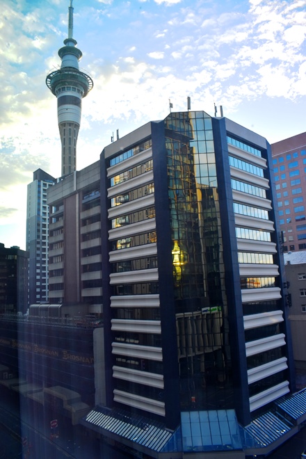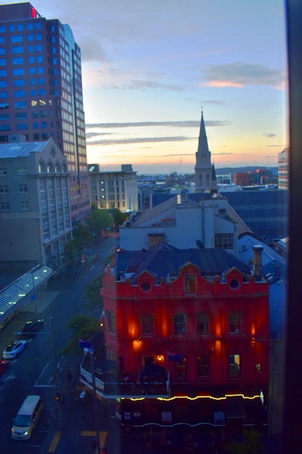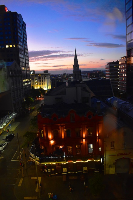 部屋からスカイタワー。19時。