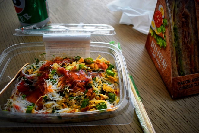 ベトナムチキンヌードルサラダと、ベーコンエッグサンドイッチ。