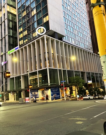 下から見たシェイクスピアホテル。