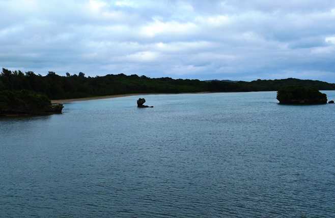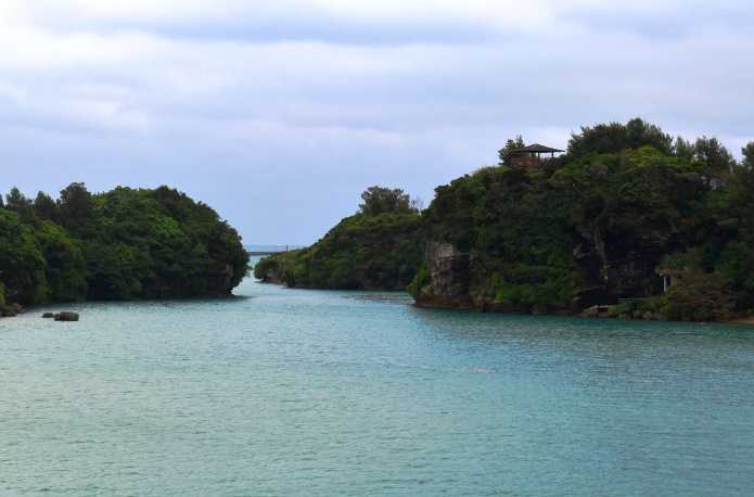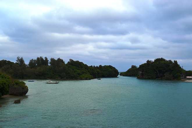 屋慶名海峡。海峡は狭いところで40数メートル。