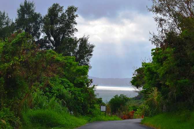 島の端まで、橋から1.2キロ、1本道未舗装の狭い道をそろり進んできた。